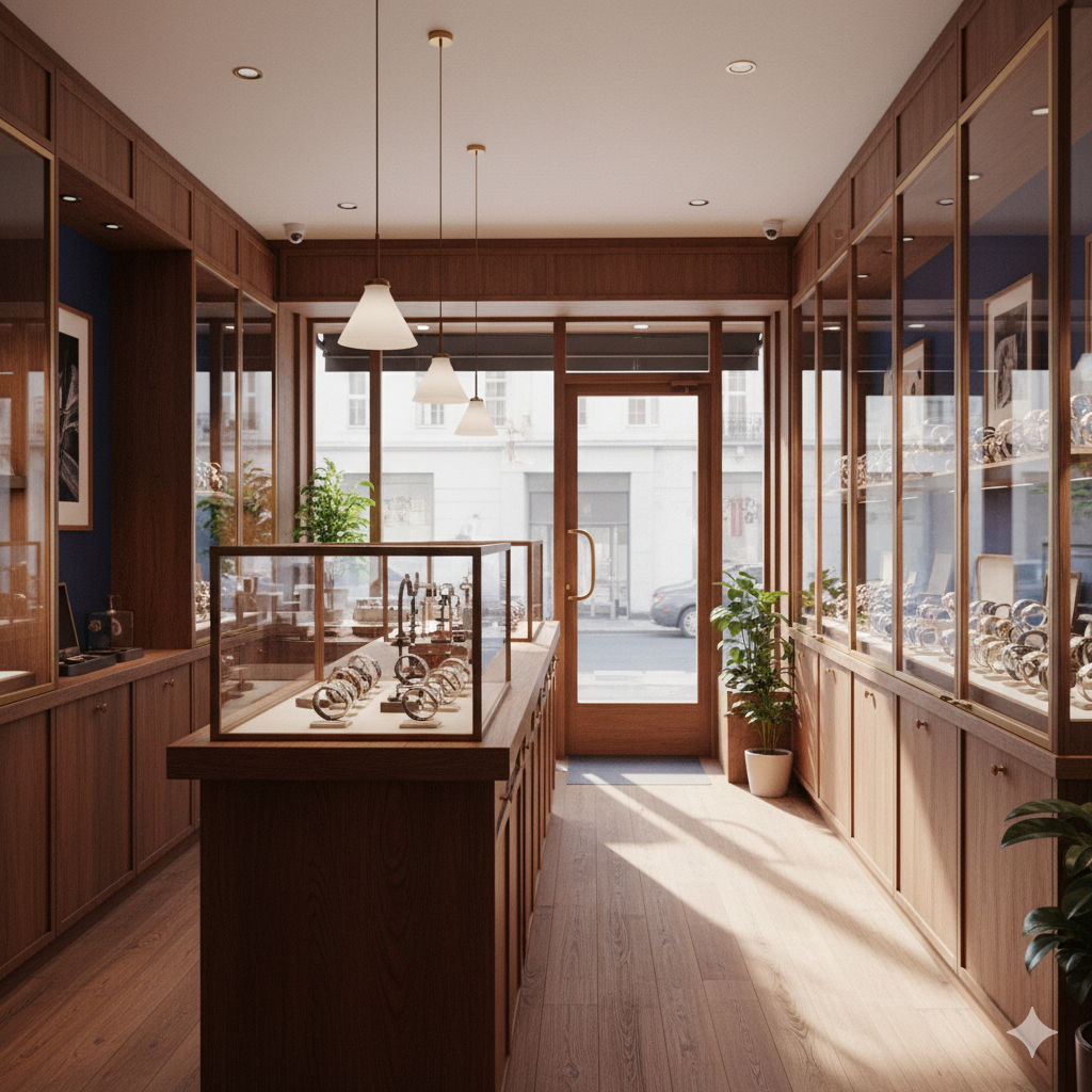 In unserer Filiale empfangen wir Sie in einer Atmosphäre, die Handwerkskunst, Qualität und persönliche Beratung vereint. Zwischen hochwertigen Uhrenmarken und feinen Accessoires nehmen wir uns Zeit für das Wesentliche: Sie und Ihre Uhr.