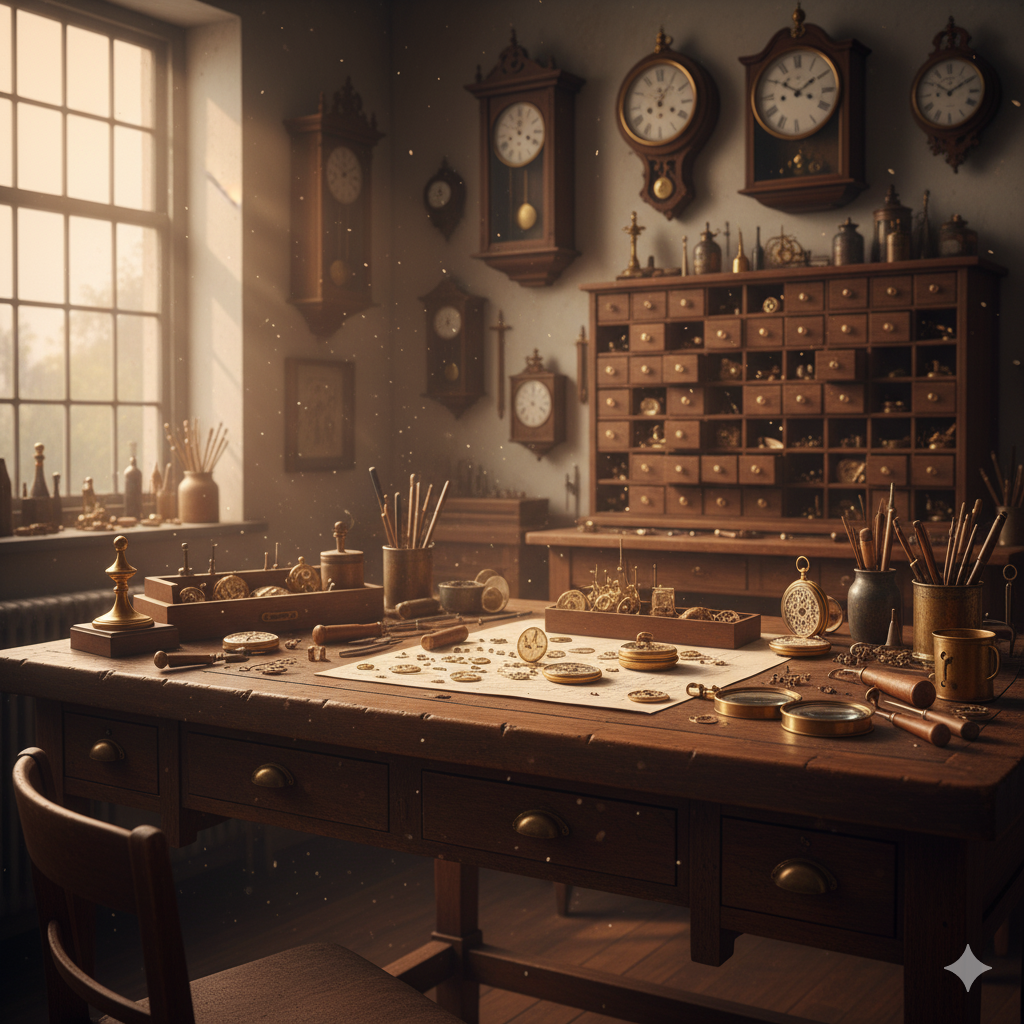Unsere Werkstatt ist nicht nur ein Ort der Arbeit, sondern ein Raum der Leidenschaft – dort, wo Zeit im wahrsten Sinne des Wortes wieder zum Laufen gebracht wird.
