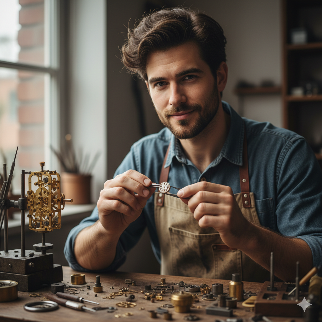 Mein Name ist Max Mustermann, und die Uhrmacherei ist nicht nur mein Beruf – sie ist meine Leidenschaft.